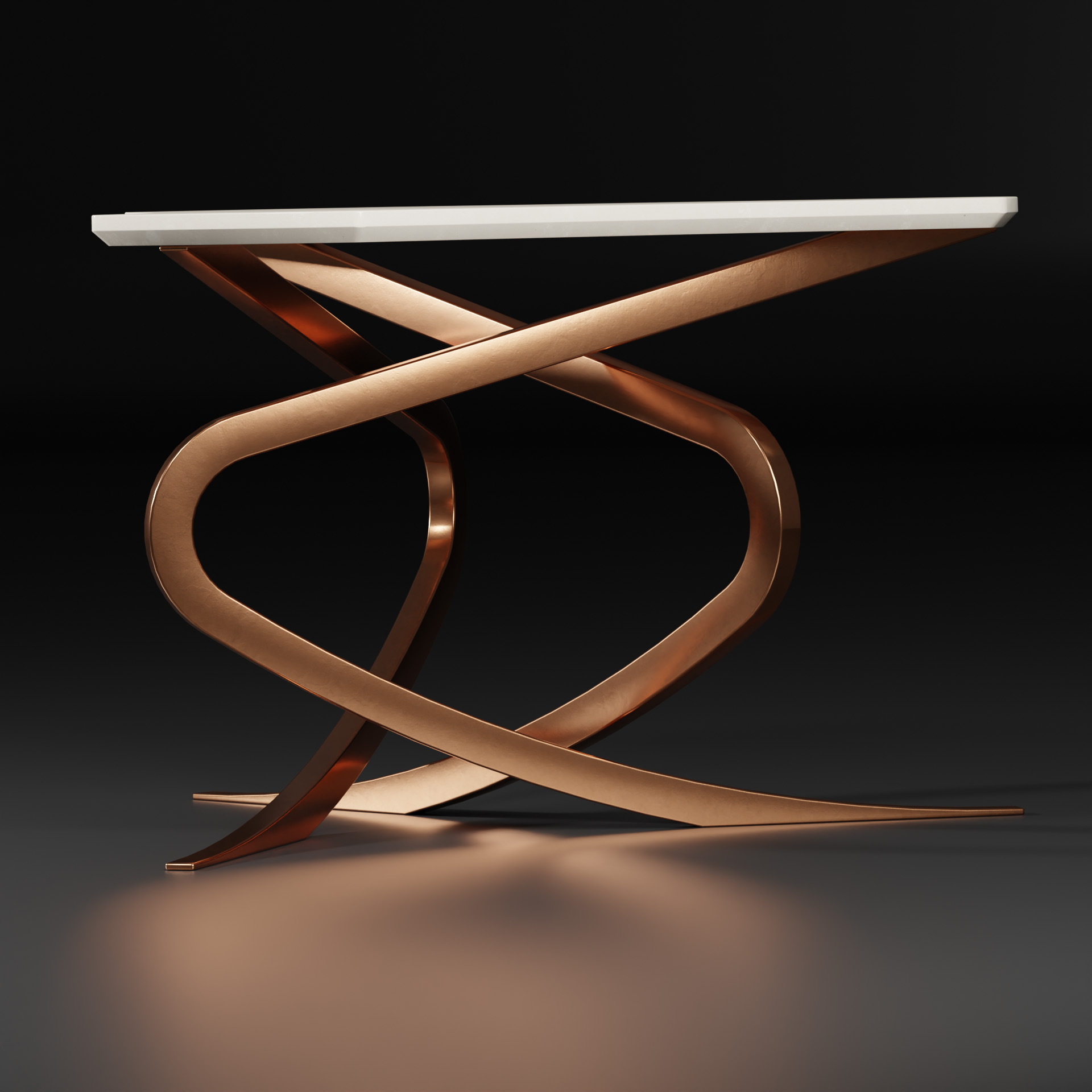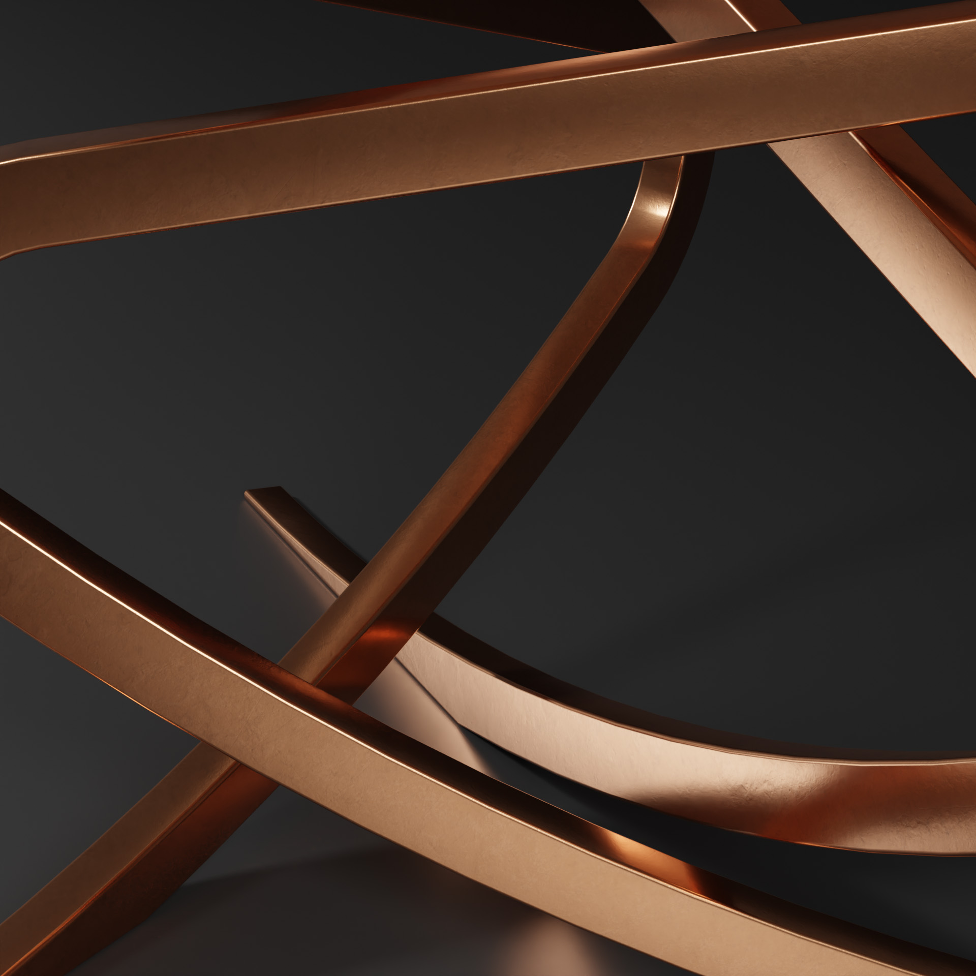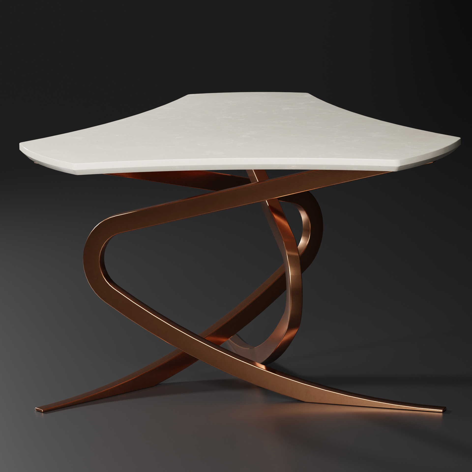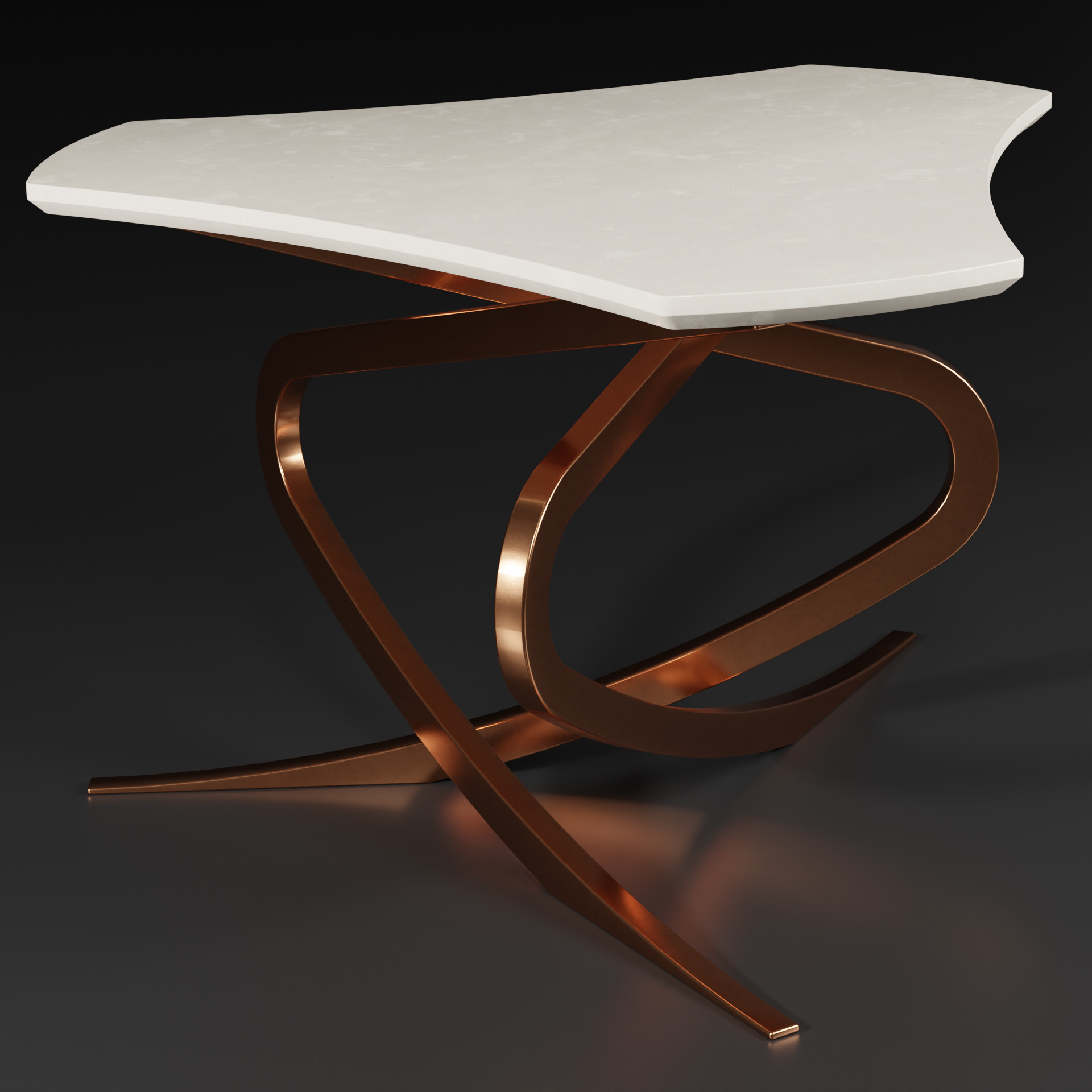 Made with a piece of marble and bronze legs. The curvature of the legs means that they never touch each other and create the false effect of instability.