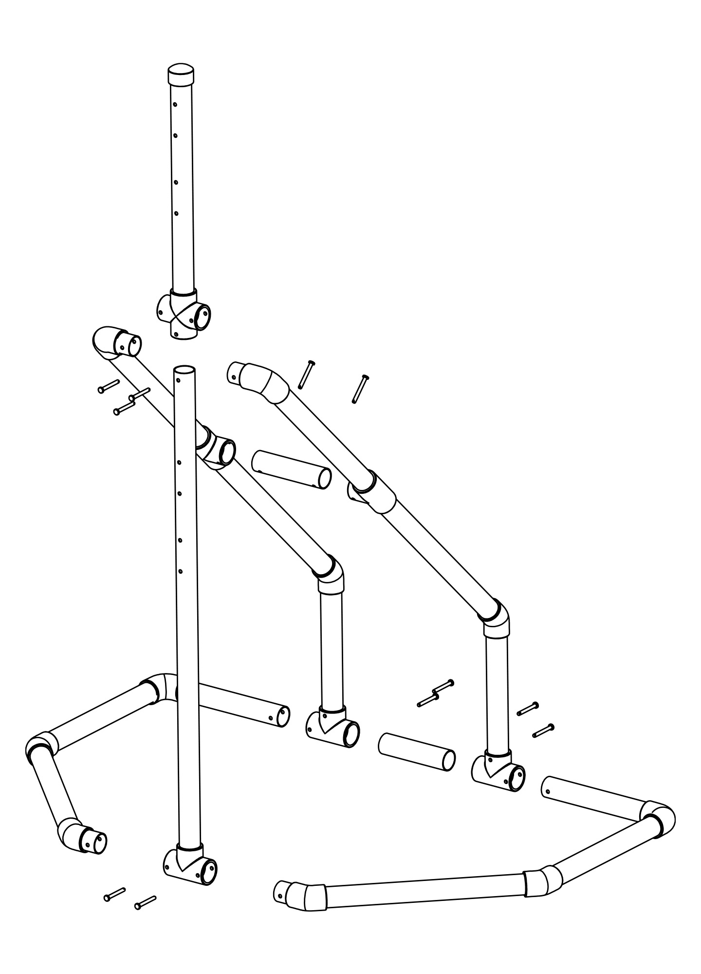 Simple PVC structure consisting of 8 pieces that are joined together with safety bolts. The assembly and disassembly of Móvel is simple and can be carried out by any adult without any previous qualification.